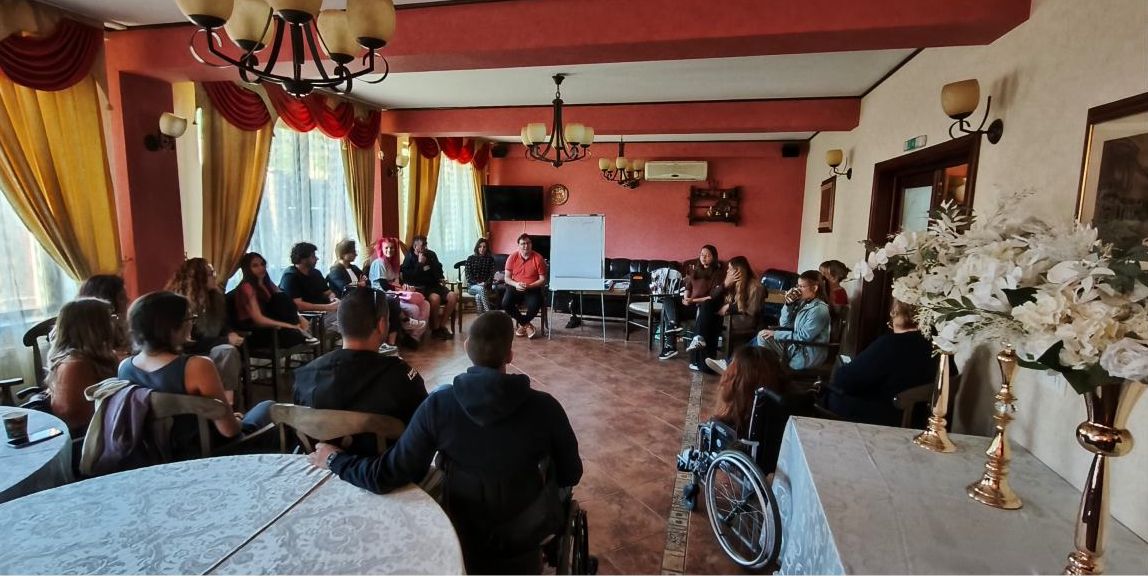 The initiative brought together youth workers from Romania, Cyprus, Greece, and North Macedonia. In total, 16 participants were involved, including 3 persons with disabilities, 3 attendants, and 2 trainers, one of whom is completely blind.