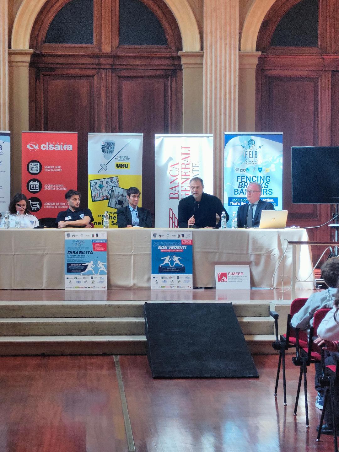 On Friday, October 3, the event began with a press conference introducing the 5th International Blind Fencing Trophy “Città di Milano” (held at 9:30 a.m. at the Istituto dei Ciechi di Milano – Via Vivaio 7, Milan), followed by the workshop “Sport & Disability…in punta di fioretto.”