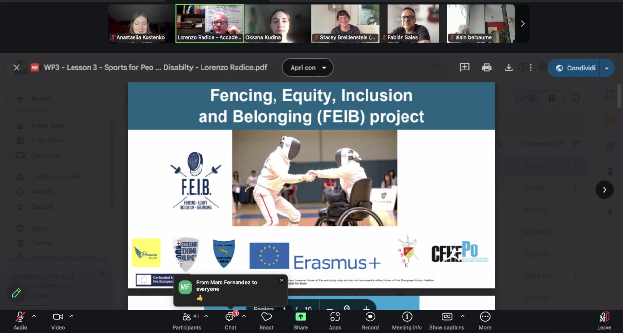 Nowadays, sport is increasingly recognized not only as a tool for physical development, but also as a powerful driver of social inclusion. This idea lies at the heart of the international project Fencing: Equity, Inclusion and Belonging (F.E.I.B.), which aims to create equal opportunities in sport for people with and without disabilities. One of the project’s key achievements is the development of an online training course for sports operators, introducing innovative approaches to inclusive fencing activities.